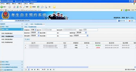 进入《机动车驾驶人考试互联网预约平台》首页,点【预约申请查询】,输入自己的身份证号码进行查询。