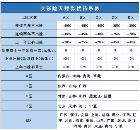 以下是交强险浮动费率表,会根据车辆出险和不出险的情况,价格进行相应的上浮与下降。
