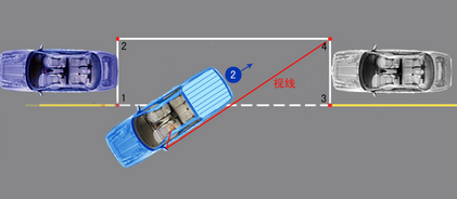 看好右线调车身,左镜竖缝沿右线。