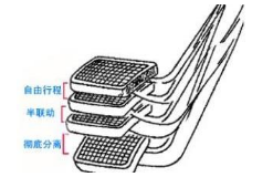 离合器半联动是指离合器不稳定联接的工作状态,即驾驶员踩离合器踏板,使离合器压板压力逐步减小,造成主动盘与从动盘之间处于边转边滑的状态。手动挡普通汽车需要使用半联动处理很多事情,但是过长时间的半联动会导致离合器磨损。