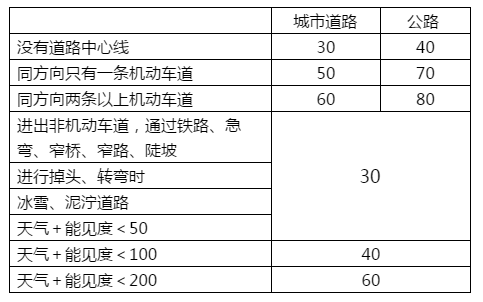 1.最低速度:[同向]两道100,60;三道110,90,60;四道110,90,90,60;