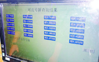 另外一种选择车牌号的方法是在车牌号码库里随即选择,这个号码库是现成的号码,有很多是车辆报废、注销后刚存入的车牌号,因此也是有不少好号的。