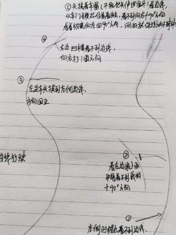 注意,曲线行驶快要出弯的时候注意看右后视镜别压线(方向偏的可以反方向打一点点方向盘)