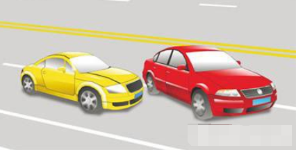 左右两侧车道的车辆向同一车道变更时,左侧的车辆让右侧的车辆先行。