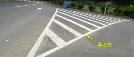 又一个新手容易犯错的线出现了,导流线通常会出现在比较复杂的路口、匝道等位置,作用就是引导车辆按路线行驶。