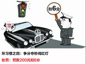 坏习惯之四:争分夺秒闯红灯 处罚:罚款200元扣6分
