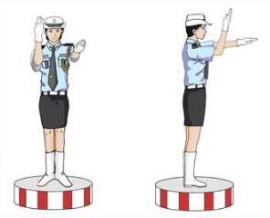 答题技巧:交警举手朝向您,无其它动作时就是告诉您停止,注意,是直抬左臂。