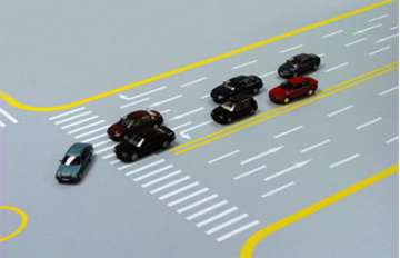 2、在交叉路口左转弯时,应提前减速进入左转弯车道(有左转待转区的路口,应在绿灯亮时进入待转区)或靠道路左侧等待。
