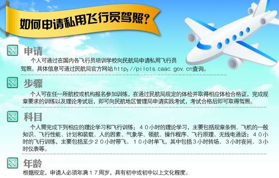 考取私人飞行驾照,需要经过6至8个月的初级培训,大约10万元以下的考牌费用就可拿到驾照。