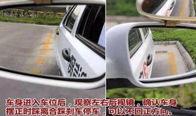 3、停车:在靠库过程中,当左后视镜下沿盖过停车线,就可以踩离合踩刹车停车,此时车尾已过前库线,前车轮压停车线。