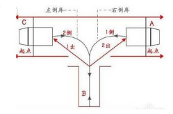 先从“A”经过“1倒”进入“B”,从“B”出来经过“1出”进入“C”,再从“C”经过“2倒”进入“B”,最后从“B”经过“2出”进入“A”考试结束。
