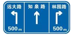 解析:交通量的四车道以上公路交叉路口预告:用以预告前方交叉路口形式、交叉公路的编号或交叉道路的名称、通往方向信息、地理方向信息以及距前方交叉路口的距离。设在交叉路口告知标志前150米-500米处。