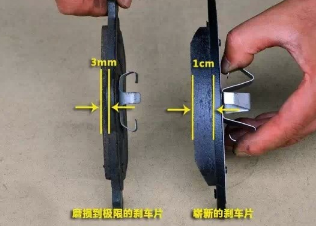 有的老款车辆刹车片没有连接行车电脑,而是在刹车片上安装了一个报警的小铁片。当摩擦材料被磨得快没了的时候,刹车盘磨到的就不是刹车片,而是报警的小铁片了。这时车辆会发出刺耳的金属之间摩擦的“唧唧”声,那就是更换刹车片的信号了。