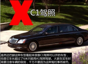 也许你会觉得只要是轿车,C1驾照都可以开,但有一些豪华轿车的长度会超过6米,如迈巴赫62,按要求是要上黄色牌照的。C1驾驶证是不能开超长的加长轿车的。
