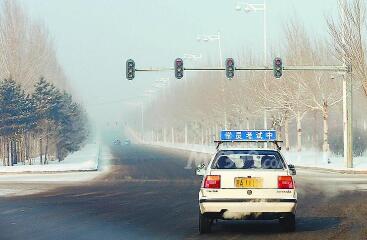 5.按照“一踩(踩离合)二挂(挂一档)三灯(开转向灯)四喇(按喇叭)五刹(松手闸)六视(看后视镜)”的程序,轻轻转动方向盘起步。注意:如果车子停在路右侧,起步时应当开左转向灯看左后视镜,轻轻转动方向盘使车子进入正常行驶车道;如果车子停在路左侧,起步时应当开右转向灯看右后视镜,轻转方向盘,使车子跨过中心线进入正常行驶道路。