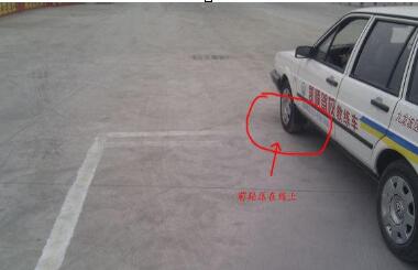 停车时,车前轮压在线上(可以过线,因为线上有感应器,压到或压过才能感应到)