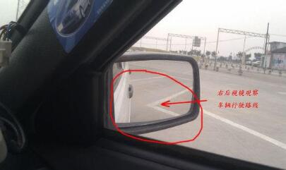 车辆向右后行驶时,可以通过右后视镜观察车身和库角之间的关系和行车路线