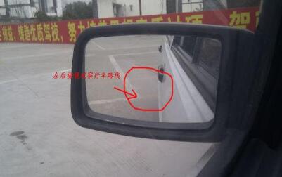 向左后退时,也可以通过左后视镜观察车身与库线之间的距离和行驶路线