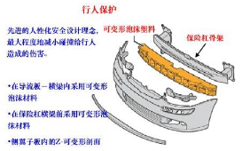 之前在网上看到一些车辆的保险杠是泡沫做的,以为这是偷工减料。其实没错,以前确实是用钢铁的,但考虑到出事故的人群来说,这是多么的可怕。改换成塑料和泡沫的保险杠能缓解对行人的腿部,尤其是小腿的撞击力,配合前杠的合理设计,减少对行人被撞时的伤害程度。如果确实很差的保险杠会对车子的部件造成很大的伤害。