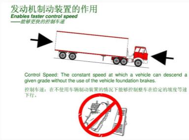 二是有效地减少脚制动的使用频率,避免因长时间使用制动器,导致制动器摩擦片的温度升高,使制动力下降,甚至失去作用;