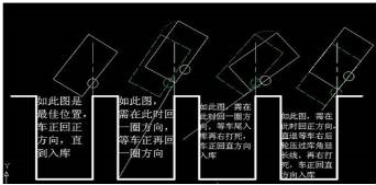 入库前方向盘打的太早,这个主要是是指右倒库开始,就是右打死方向盘过早,就是入库角度如果不调整容易车轮压右边线或右边线出库。