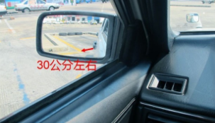 挂倒档低速行驶,看右后门右下角与库区右侧线重合时迅速向右打轮(1.5圈);看右后视镜中库区右前角至中间位置向左回轮(1.5圈);当右前角线下移至后视镜下沿时向右打轮(1.5圈),看车身与库区线平行时,迅速向左回正(1.5圈),微调后看钥匙门对后线停车。