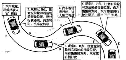 1)进人“S”形路前,降低车速,用1挡或2挡驶人“S”形路,选择恰当的路线及速度通过。