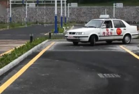 直角转弯算是比较简单的一个项目,其中的“易挂点”则是打方向转弯的时机--方向打早了,后轮就会轧到车道内侧角;方向打晚了,车前角则会超过车道外侧边线。