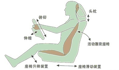 背——靠座椅 要把整个背靠在座椅上,这样可以支撑整个上半身的重量,让身体在座椅上受力均匀,保证驾驶的过程中,肩膀是放松的!