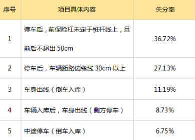 那么,科二考试中,失分率最高的是什么?