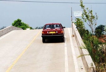 首先,我们将车停在坡道中段,车头朝上,熄火后挂上一挡,松开刹车,车辆稍稍向后移动少许便迅速停住。我们下车观察了5分钟,车辆依然稳稳地停在斜坡上。