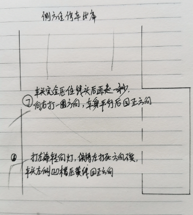 4、当左后轮即将压到边线时开始向左打满方向。