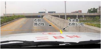 情况下,右边线正对左侧雨刷铆钉或者车头右三分之一处或者车辆中间向右一圈处即为30cm(根据驾驶者的身高,座椅的前后稍作调整。)