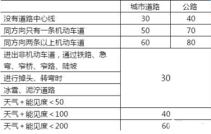 最低速度:[同向]两道100,60;三道110,90,60;四道110,90,90,60