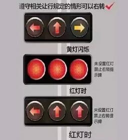 其实在国内绝大多数情况下,右转时会遇到三种右转指示情况: