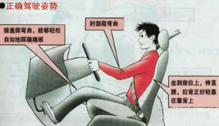 正确的驾驶姿势对安全行车是非常重要的,不但可以消除长时间驾驶的疲劳,保证良好的驾驶视野,而且还可以使驾驶动作更准确、迅速与合理。驾驶姿势主要与转向盘及座椅有关。在坐进驾驶席之后,首先应该深深地坐在座椅后部,使腰部和肩部靠在椅背上。先感受一下座椅的前后距离和靠背角度是否合适,然后把手臂伸向前方,自然握住转向盘的两侧。这时,必须使手腕能自由地弯曲,活动自由。腿部要有一定的活动空间,用脚踩离合器踏板、制动踏板或油门时不费力,而且身体不必前倾,此时的位置就基本合适了。如果不合适,可以前后滑动一下座椅的位置,或调整一下椅背倾斜的角度,使之达到上述要求。