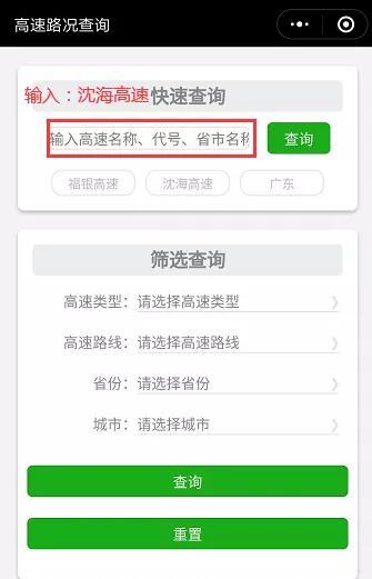 二、输入高速名称、高速代号或省份名称,三者输入其中一种就行,下面以沈海高速为例: