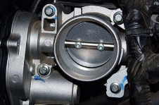 拆除节气门上的空气管路后,我们便可以拆下整个节气门了。骐达的节气门通过4个螺栓固定在发动机缸体上,我们使用合适的工具很快便能把其卸下。