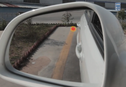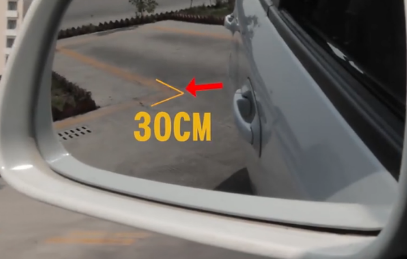 第二个点:继续观察右侧后视镜,当右侧车身距离库角30cm左右距离的时候,回正方向。