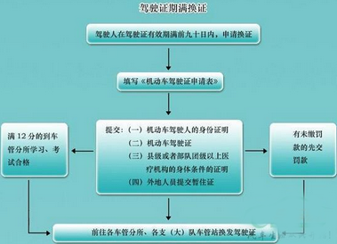 机动车驾驶人应当于机动车驾驶证有效期满前九十日内,向机动车驾驶证核发地车辆管理所申请换证;超过机动车驾驶证有效期一年以上未换证的,注销机动车驾驶证。具体流程见下图。