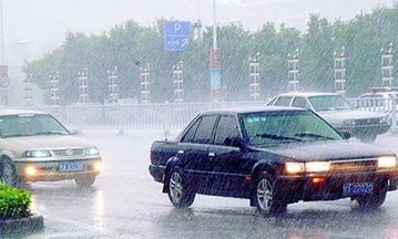 7.暴雨会导致不少路面出现积水。积水超过轮胎的一半时,不能冒险通过,否则很容易导致排气管进水,最终损坏车辆;积水低于轮胎的一半高度时,车辆一般可以通过,但也不能大意,应低挡慢速平稳通过,防止水花溅到发动机上部的电器,造成熄火;离开积水路段后,不要立即快速行驶,因为刹车片溅水后可能导致刹车不灵敏,此时应低速开一段时间,等刹车片上的水分甩掉或蒸发后再正常行驶;如果车辆在水中熄火,千万不要再次启动,应打电话求援。