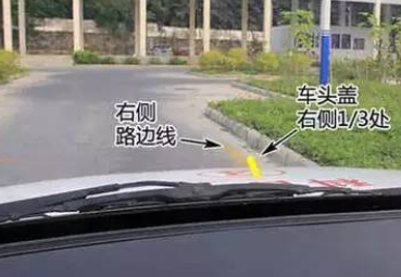 2、靠库:打右转向灯,让车头盖右侧1/3的位置压库边线,即可保持车身与库边线有30cm左右距离。