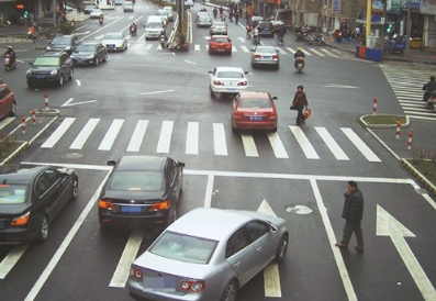 机动车通过有交通信号灯控制的交叉路口时,在划有导向车道的路口,应当按所需行进方向驶入导向车道。如果是直行车,进入了左转或右转车道,电子眼同样会马上进行抓拍。