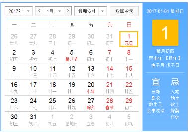 2017元旦放假时间安排表