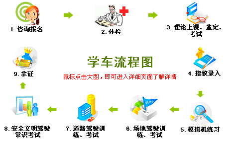 携带身份证原件前往当地驾校报名点进行报名,体检合格后,等待驾校安排理论学习时间。