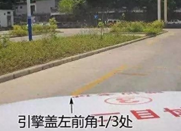第二步:继续往前走时,看到引擎盖左侧三分之一处与黄线重合,就向右打一圈方向,让车辆可以绕过库角驶出车位。
