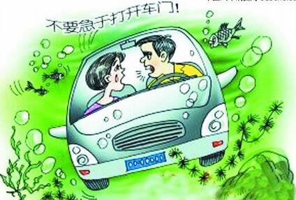 ◆对于目前多数电动式车窗,如果入水后车窗与车门都无法打开,这时要保持头脑冷静,将面部尽量贴近车顶上部,以保证足够空气,等待水从车的缝隙中慢慢涌入,车内外的水压保持平衡后,打开车门即可逃生。