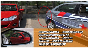 注意把两侧后视镜调低,防止剐蹭到两侧车辆。