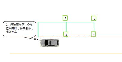 将车向前开至与车位前车大致齐平的位置,如果该车位停有车的话,两车横向相距约1米。此时如有需要,可将右侧后视镜的角度往下调,直到能看到右侧车轮为止,为倒车做好准备。