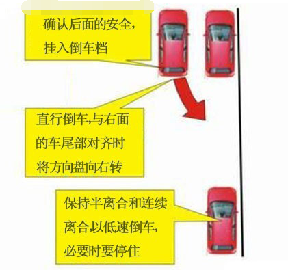 先说下新手在尚未习惯纵向停车前,可试着先把方向盘操作与倒车操作分开进行练习,纵向停车所必需的车位长度大概是车身长度的1.5倍。只要记住车辆的停止位置和下一个移动的目标点,就能把车准确地停到停车位上。
